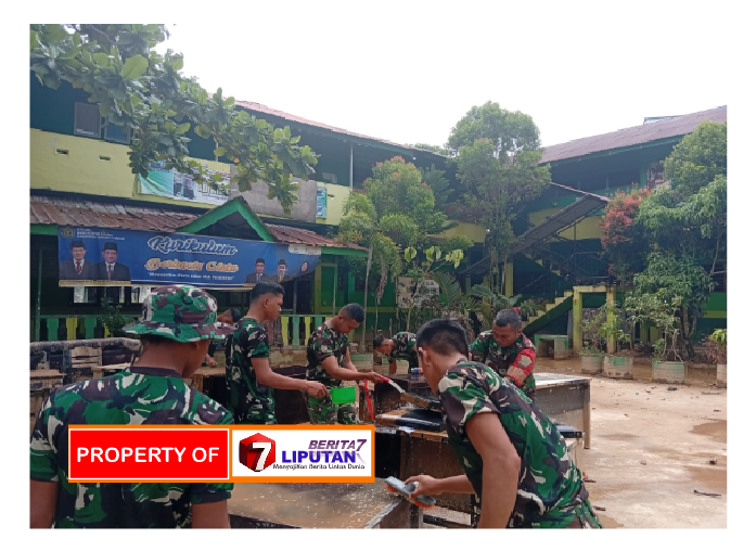 Tapanuli Tengah, liputan berita 7.com Satgas Penang gulangan Bencana Alam (Gulbencal) Kodam I/Bukit Barisan bersama para guru melaksanakan pembersihan lingkungan MIN 7 Sibuluan Nalambok, Kecamatan Sarudik, Kabupaten Tapanuli Tengah, Rabu (4/2/2026), guna memulihkan kondisi sekolah pascabanjir dan tanah longsor agar kembali layak digunakan untuk Kegiatan Belajar Mengajar (KBM).