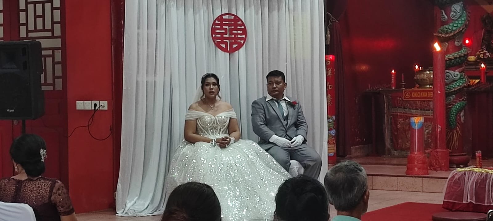 Upacara pernikahan dilaksanakan secara agama Khonghucu pada pukul 10.00 hingga 11.40 WITA, dipimpin langsung oleh pimpinan tertinggi klenteng, Tuan Xusehi Budi Suniarto. Prosesi berlangsung khidmat, sarat makna spiritual, serta mencerminkan nilai-nilai luhur dalam kehidupan berumah tangga.