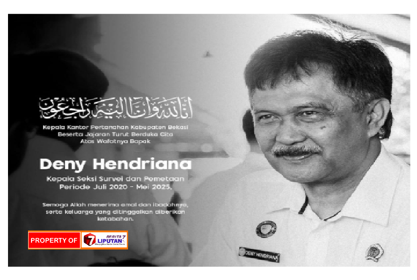 BEKASI – LIPUTAN BERITA7 Innalillahi wa inna ilaihi rojiun. Keluarga besar Liputan Berita7 menyampaikan rasa duka cita yang mendalam atas wafatnya Bapak Deny Hendriana, yang dikenal sebagai sosok pekerja berdedikasi tinggi dan sempat menjabat sebagai Kepala Seksi Survei dan Pemetaan Kantor Pertanahan Kabupaten Bekasi pada periode Juli 2020 hingga Mei 2025.