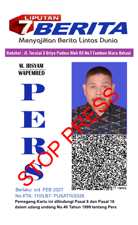 LIPUTAN BERITA7 – JAKARTA. Media Liputan Berita7, dengan ini memberitahukan kepada seluruh masyarakat, Instansi – instansi terkait, para pelaku usaha, dan seluruh insan Pers, bahwa terhitung tanggal 07-03-2026 menerangkan bahwa nama dibawah ini :